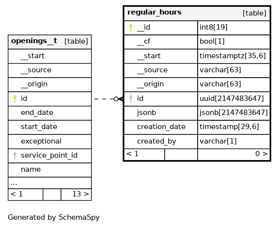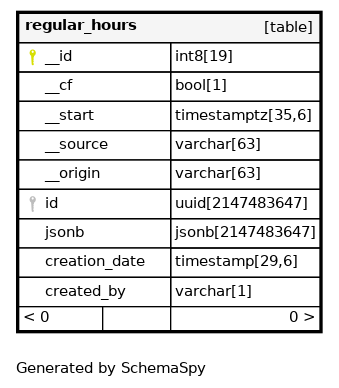| regular_hours_pkey | Primary key | Asc | __id |