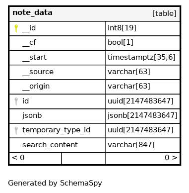 | note_data_pkey | Primary key | Asc | __id |