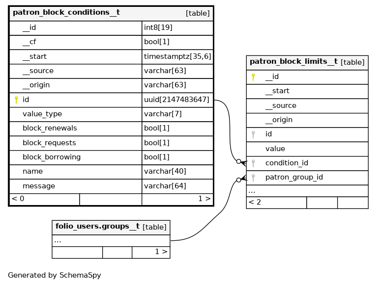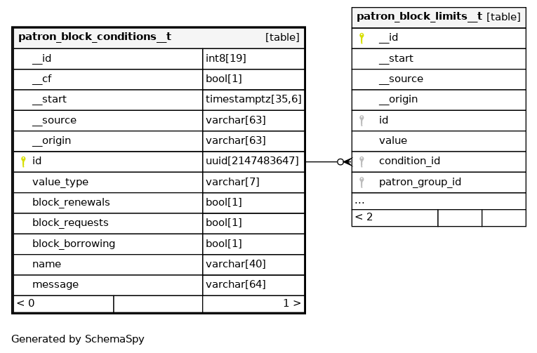 | patron_block_conditions__t_pkey | Primary key | Asc | id |